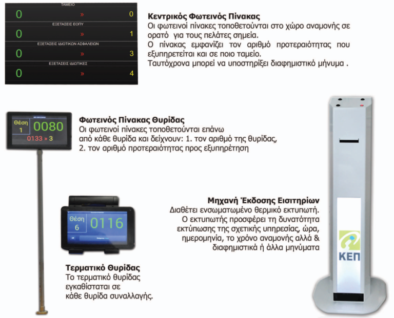 Περιλαμβάνει: Αποτύπωση αναγκών, καλωδιακής υποδομής και σημείων εξυπηρέτησης. Τοποθέτηση οθόνης σε τοίχο και καλωδίωση όπου κρίνεται απαραίτητο. Τοποθέτηση, εγκατάσταση και παραμετροποίηση εκδοτηρίου.