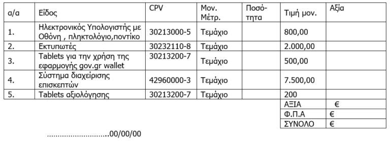 Περιλαμβάνει: Την παραγγελία λήψη, προετοιμασία και έλεγχο εξοπλισμού και την αποστολή / παράδοση στα ΚΕΠ.