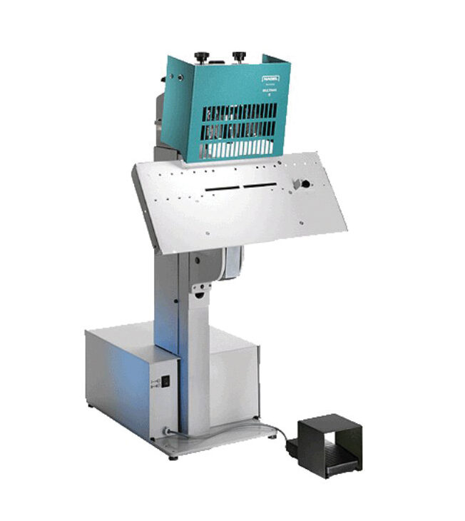Υπερεπαγγελματικό, επιδαπέδιο, ηλεκτρικό συρραπτικό δυο κεφαλών, για συρραφή απλή και ράχης (booklets), με μεγάλη μεταλλική επιφάνεια εργασίας, λειτουργία με ποδοπεντάλ, μεταλλικό προστατευτικό κάλυμμα κεφαλών, ρυθμιζόμενη απόσταση μεταξύ των δυο κεφαλών (από 80mm έως 155mm) και δυνατότητα παραγγελίας με κεφαλές σύρραψης δύο ειδών : κεφαλή τύπου Α για συρραφή έως και 150 φύλλων 80gsm (24/26) και κεφαλή τύπου Β για συρραφή έως και 270 φύλλων 80gsm (50/6 – 50/30). Στιβαρή μεταλλική κατασκευή