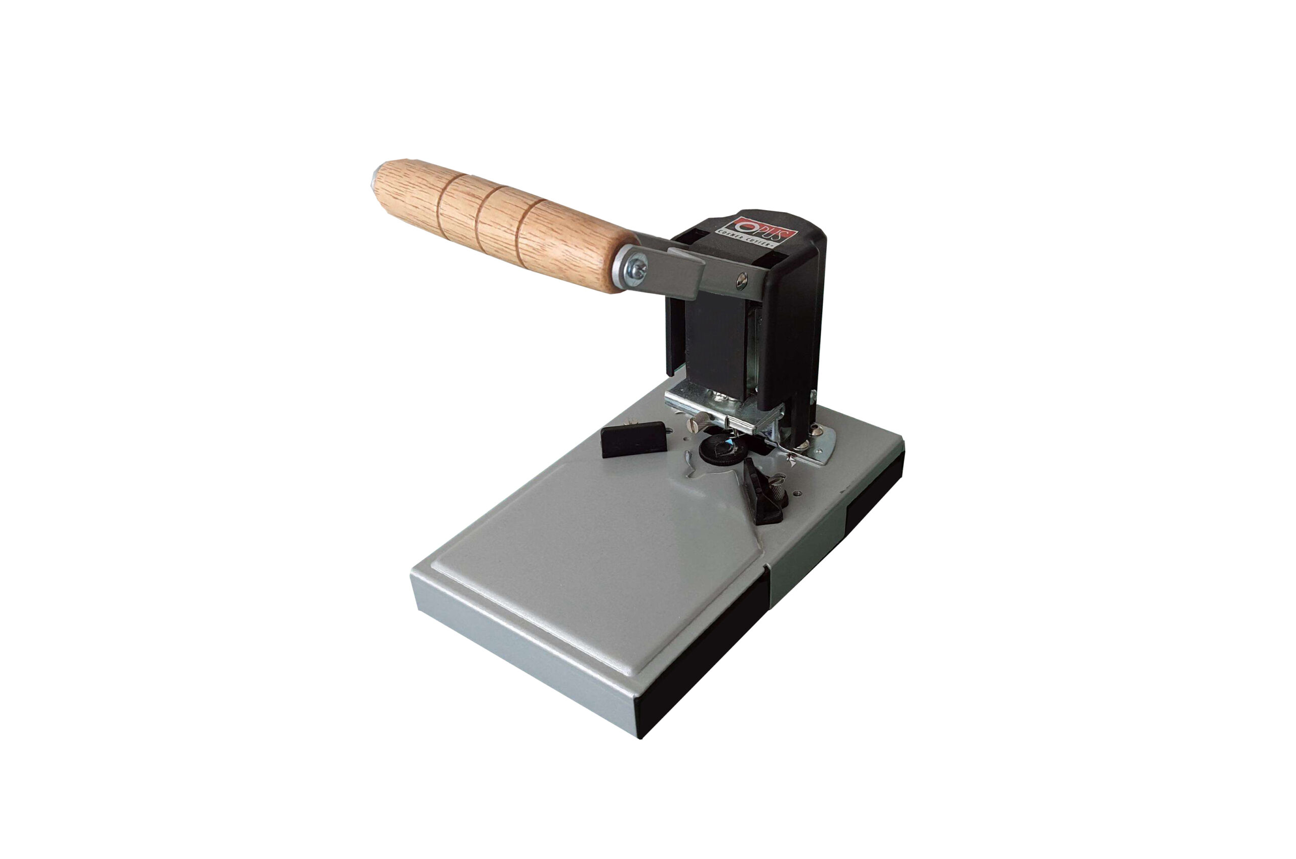 Επιτραπέζιος γωνιοκοπτης με δυνατότητα κοπής 10mm [ περίπου 100 φύλλων 80gsm ] με γωνια [ RADIUS ] 6mm. Προαιρετικα δεχεται ακομη δυο διαφορετικες γωνιες [ RADIUS ] 3,5mm και 10mm οπως και οδηγους και μητρα ημικυκλιου “thumb-cut” για βιβλιοδεσια ημερολογιων.